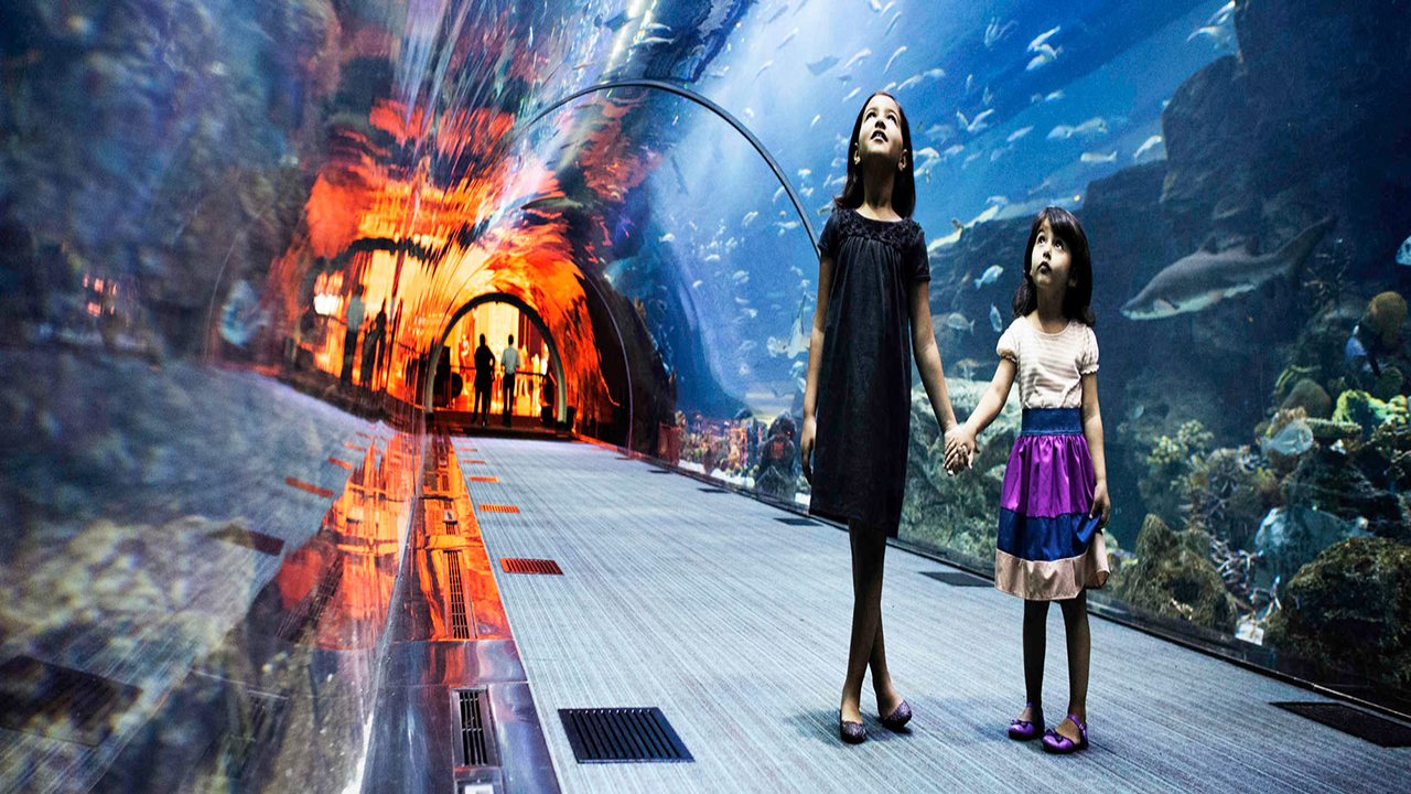 • Walk under the glass tunnel surrounded by sharks and then head to the Underwater Zoo housing incredible aquatic creatures like otters, piranhas, seahorses, and more.