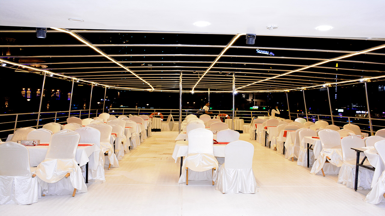 Oberoi Dhow Cruise, where every moment is crafted for romance, celebration, and pure luxury. It's more than just a cruise; it's a lingering experience that will weave its magic into your memory, creating a tapestry of moments that outshine the night itself. Traverse through the sparkling heart of Dubai, where tradition meets opulence on the deck of a traditional dhow turned into a floating restaurant.