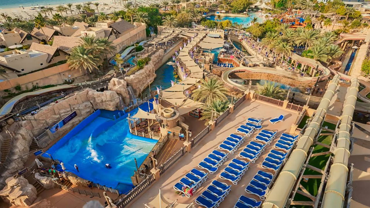 Wadi Water Park, an aquatic oasis set against the iconic backdrop of the Burj Al Arab in Dubai. Immerse yourself in the thrill of over 30 rides and attractions that cater to every member of the family, all under the warmth of the Dubai sun.